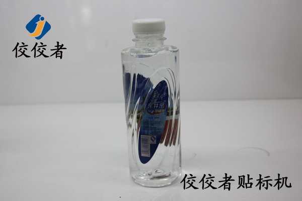 客戶所用的標簽為不干膠標簽,尺寸也是一種,需要貼正、背雙標,相對來說比較簡單,據判斷,上圖中的樣品完全可以用我們成熟的標準圓瓶貼標機進行貼標即可。能貼弱堿水瓶的機器有我公司標準機中的半自動圓瓶貼標機和全自動定位式立式圓瓶貼標機。