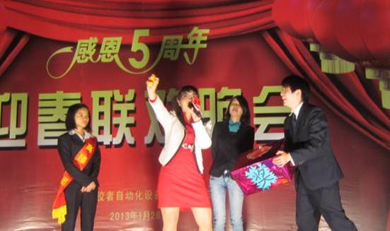 五周年年歡晚會,我們在廠內(nèi)搭建了舞臺,辦了酒宴,宴請了客戶及供應(yīng)商過來參加。我們的節(jié)目多姿多彩。還有豐富獎品禮品的抽獎環(huán)節(jié)。
