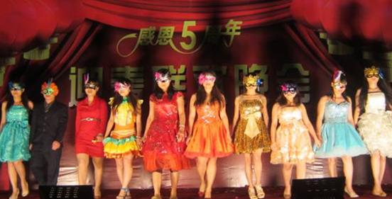 抽獎最激烈的時刻,由公司美女走秀的創(chuàng)意時裝來了個中間插播。不多說了。圖片比文字更有說服力,精彩不用言語。
