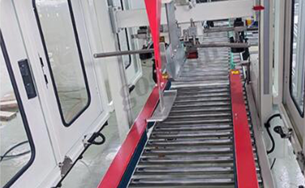 完成裝箱后,紙箱流轉至自動折蓋封箱機。該設備能自動完成上蓋的折合與膠帶的封貼,一氣呵成,保證箱體密封牢固、外觀統一。