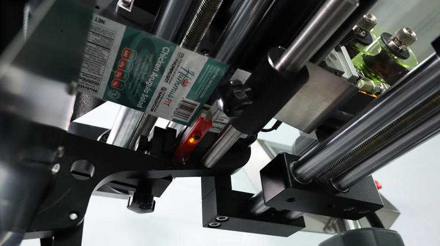 產(chǎn)品由輸送機(jī)構(gòu)被精確傳送到貼標(biāo)工位。此時(shí),一個(gè)關(guān)鍵的傳感器(通常為光纖或超聲波)會實(shí)時(shí)探測產(chǎn)品的位置。一旦產(chǎn)品到達(dá)預(yù)設(shè)的精確點(diǎn)位,該傳感器會瞬間發(fā)出一個(gè)電信號,指令貼標(biāo)頭立即啟動工作。這是整個(gè)過程的“發(fā)令槍”,確保了動作的起點(diǎn)精準(zhǔn)。