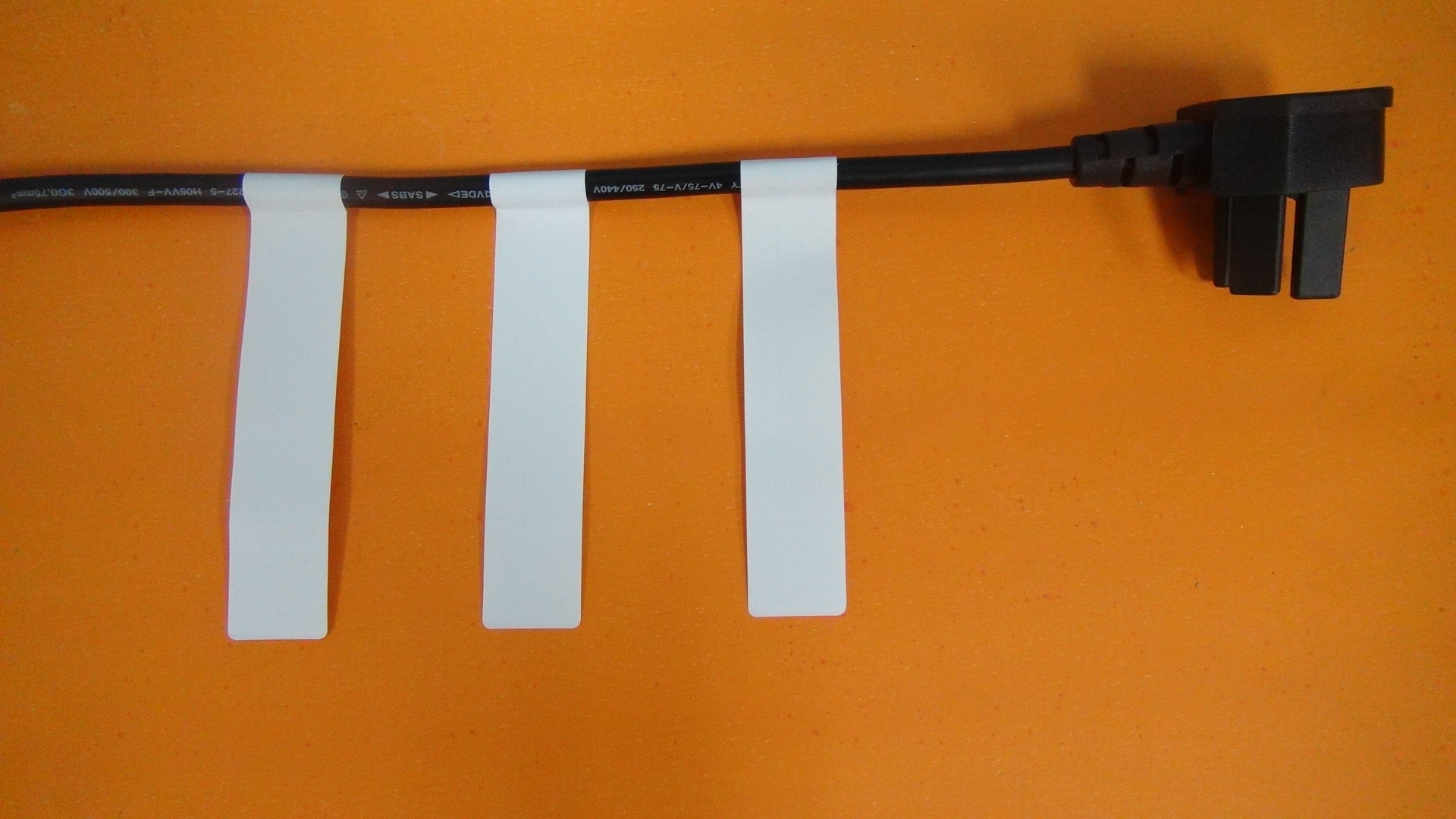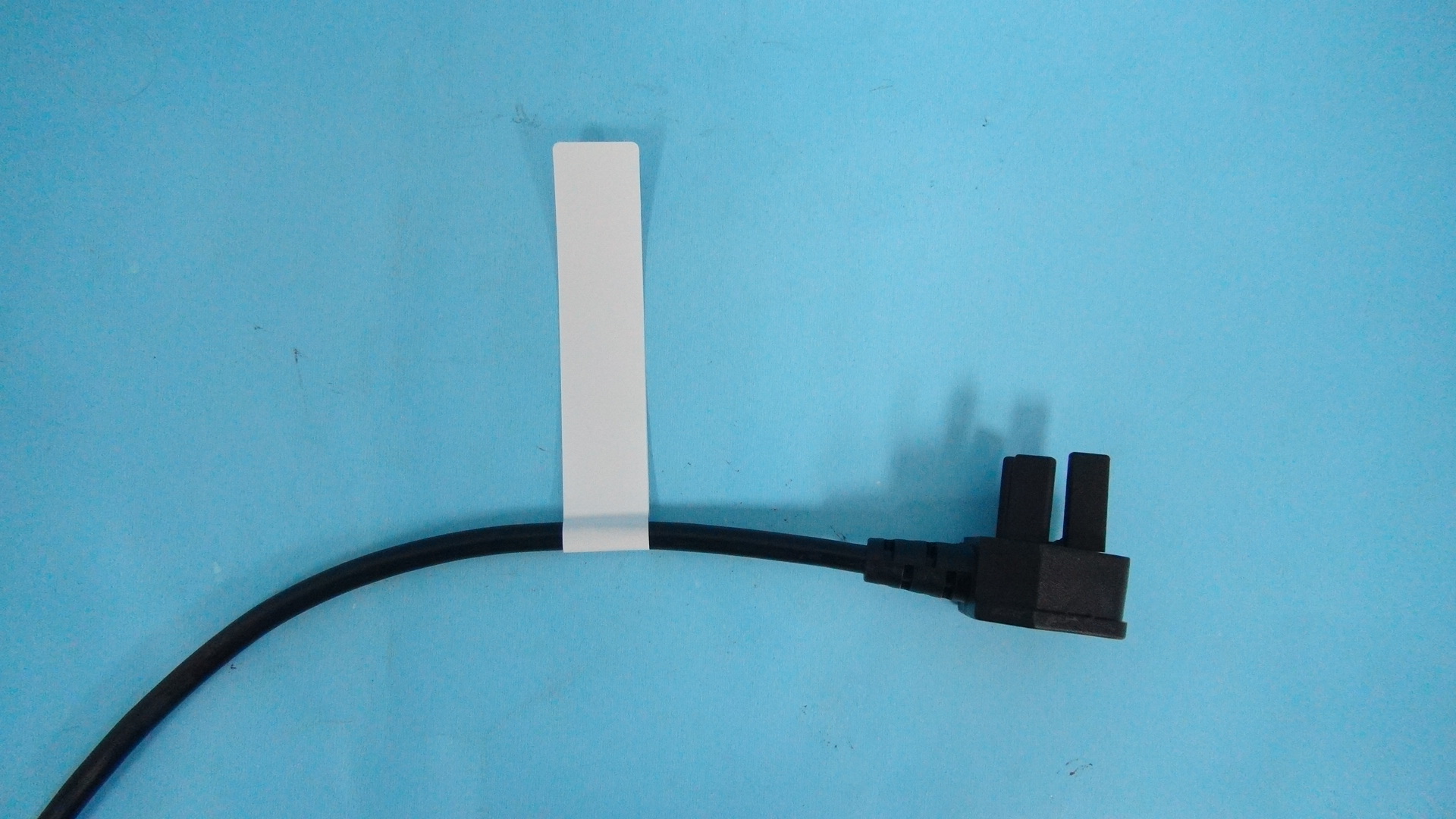 上圖:樣品六.上圖中的這個圖片是在研發過程中,對三角插頭進行多標簽貼標的樣品圖片.